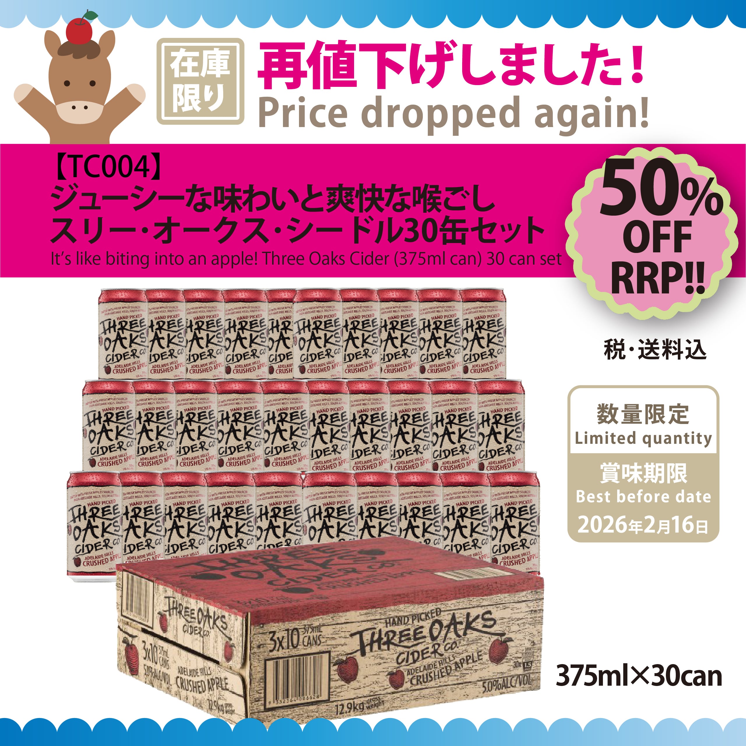 賞味期限2026年2月16日の為、特価・数量限定【TC004】スリー・オークス・シードル 1箱(375mlx30缶) | Three Oaks Crushed Apple Cider 1 box (375mlx30can)