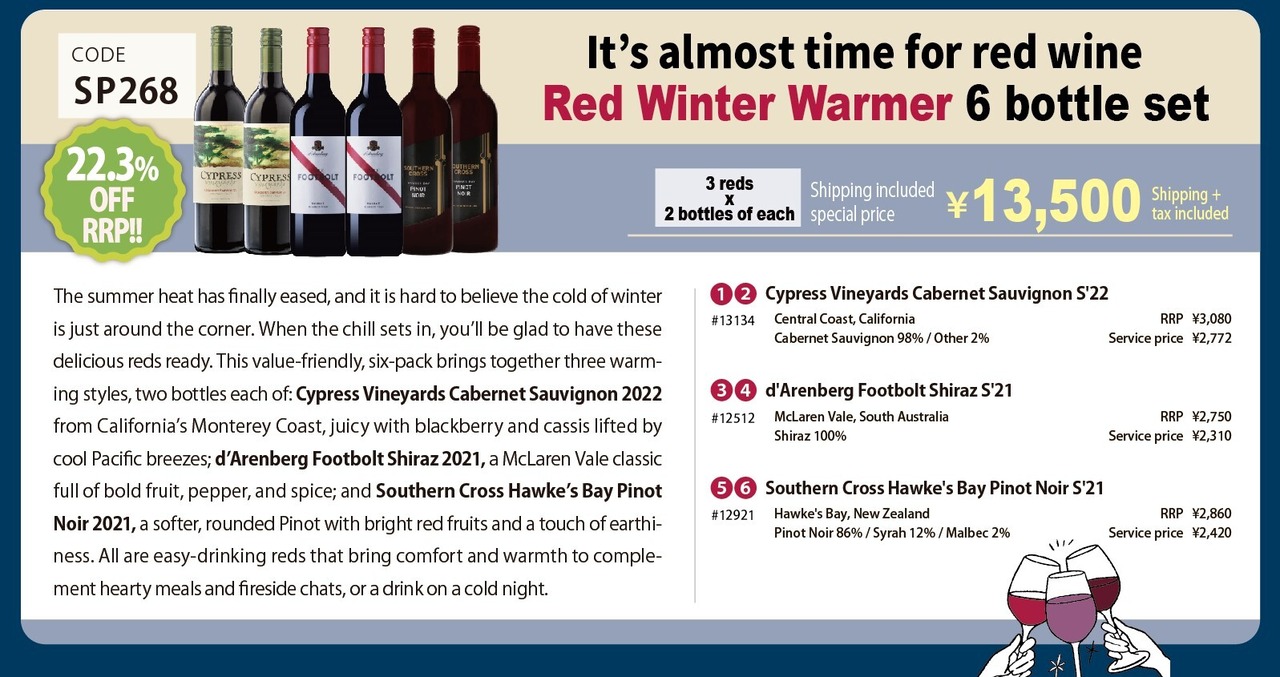 【SP268】ウインター・ウォーマー・レッド6本セット(赤3種x各2本) | Red Winter Warmer 6 bottle set(3 reds x 2 bottles of each)