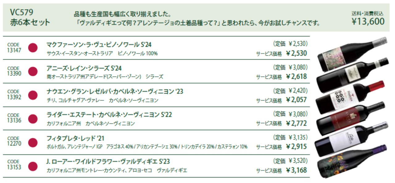 【VC579】春のおまかせ赤6本セット 6 bottle red set