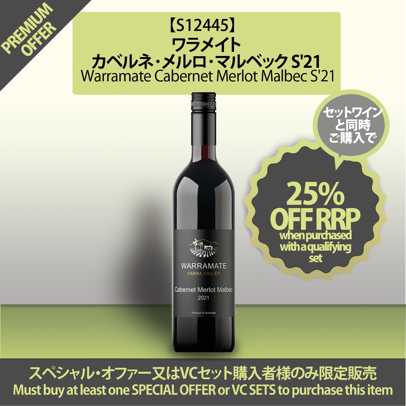 【S12445】ワラメイト・カベルネ・メルロ・マルベック S'21 | Warramate Cabernet Merlot Malbec S'21