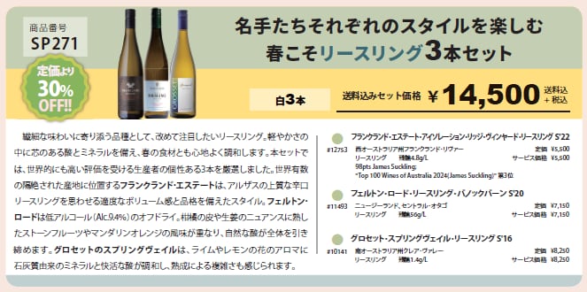 【SP271】名手たちそれぞれのスタイルを楽しむ春こそリースリング3本セット(白3本)| Enjoy the unique styles of iconic winemakers with this 3 bottle Riesling set that's perfect for Spring (3 whites)